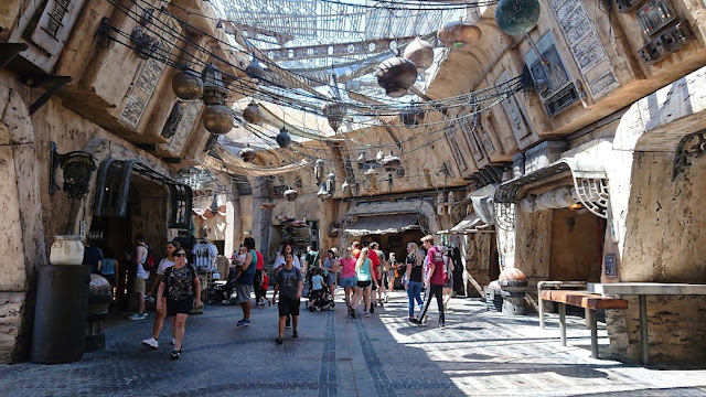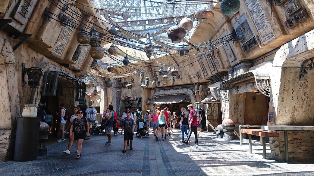 Almoçados, partimos para uma das áreas com mais expectativas: The Star Wars Galaxy’s Edge. E ao chegar lá, deu pra ter uma certeza: nem precisava ter brinquedo nenhum… Só a vila e o cenário já são, por si só, a melhor atração que Star Wars poderia proporcionar para quem acompanha os filmes.