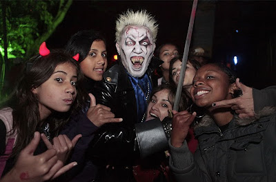 (Adolescentes em polvorosa por uma foto com o monstro. Seria essa a versão horror do Supla?!!!)